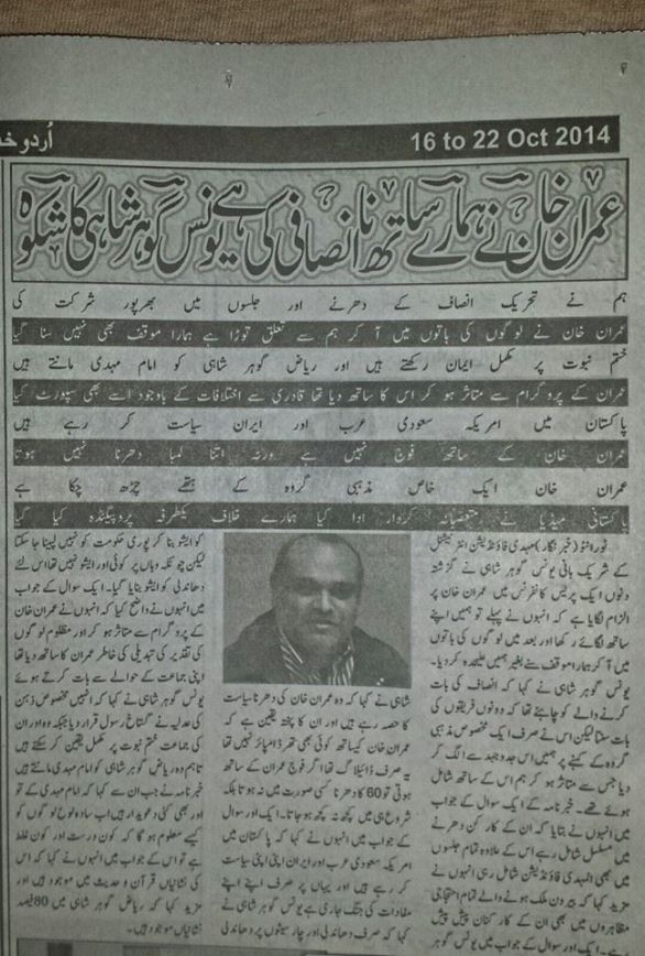 Urdu Khabarnama Canada publishes Younus AlGohar's response to Imran Khan's unjust approach towards Mehdi Foundation's unwavering support.